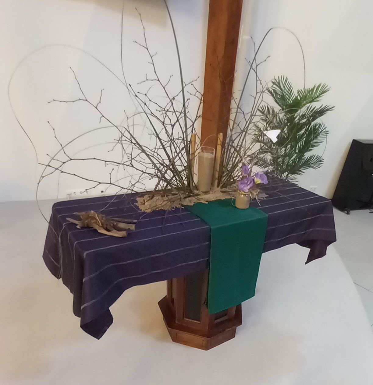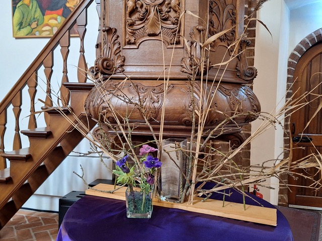 ![]() Liturgische schikking 1e zondag 40-dagentijd in de Goldhoornkerk in Oostwold Uitleg schikking (Gemaakt door Zwanie Akkerman) ![]() in de Marktpleinkerk in Winschoten Uitleg schikking (Gemaakt door Janny Geertsema-Kieft) ![]() in De Ontmoeting in Scheemda (Gemaakt door Katrien en Ludolf Niemeijer) Zand, eindeloze vlakte, onbekende verleidingen, de bloemen en het duifje als teken van de geest helpt onze weg te vinden. | ||