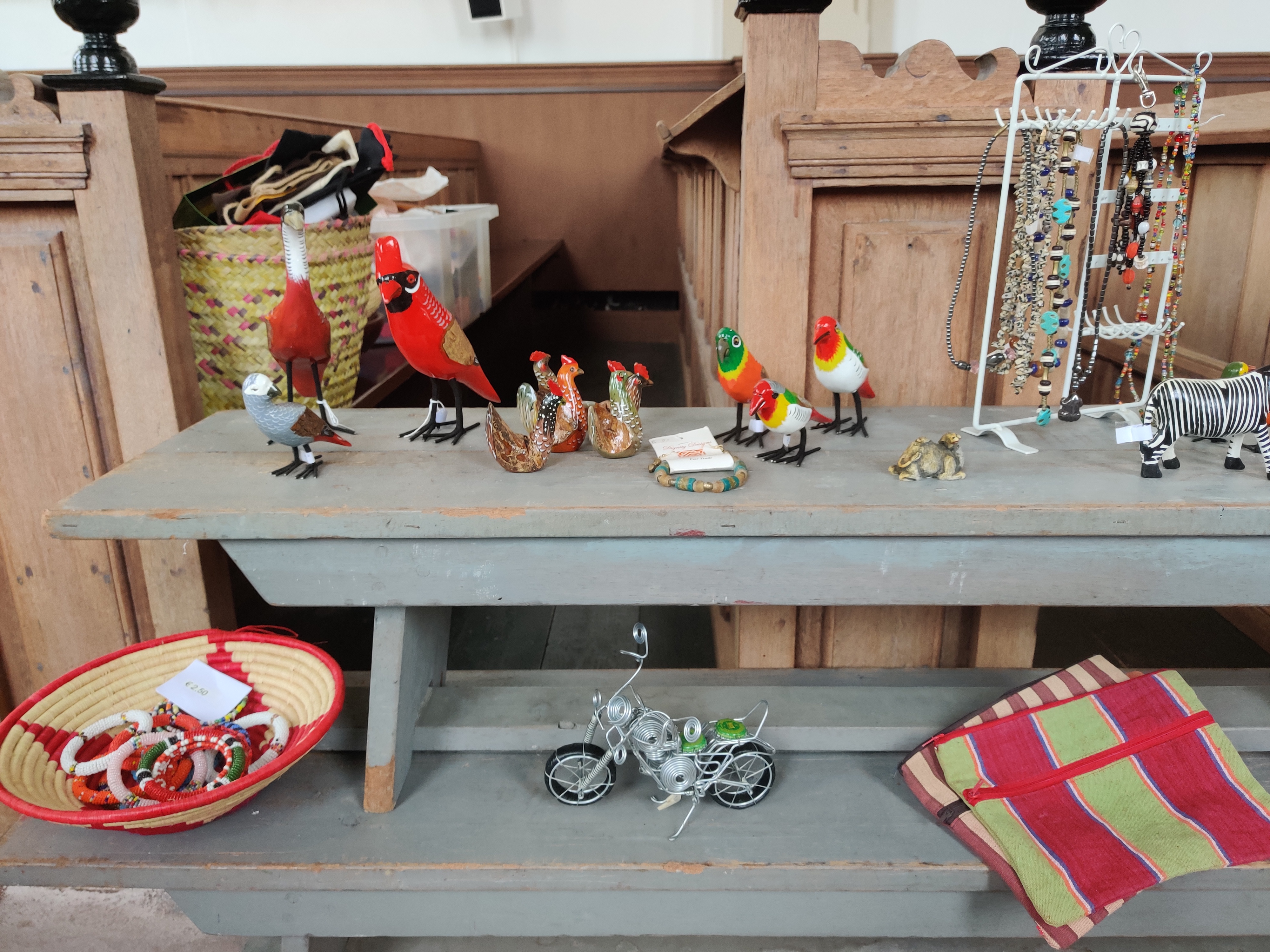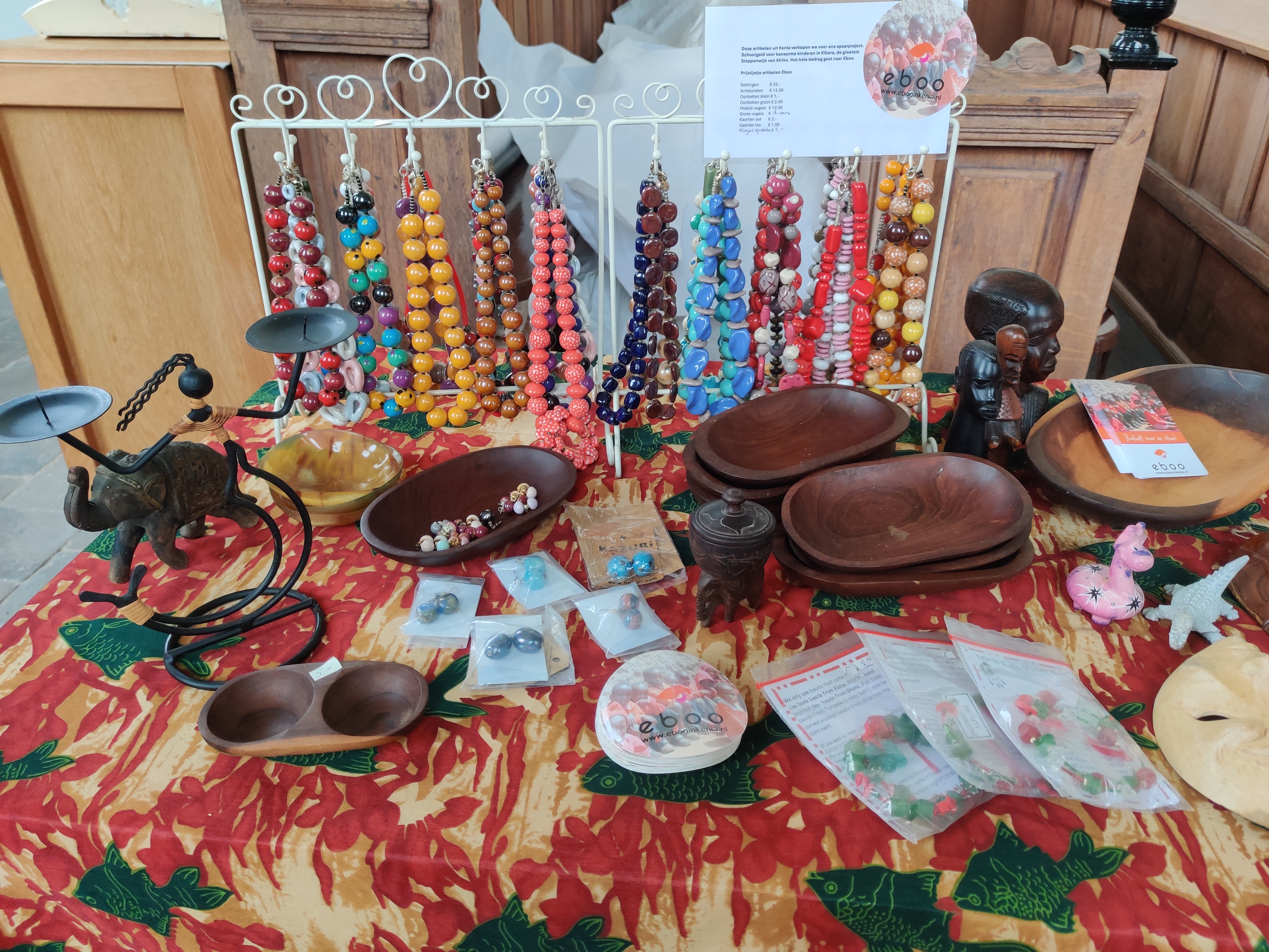 De 1e collecte was deze zondag bestemd voor dit doel en leverde (na een eerste snelle telling) ongeveer €250 op. Daarnaast had Fenneke ook veel spulletjes uit Kenia meegenomen om te verkopen voor dit doel. Deze spullen koopt ze in bij kleine makers of werkplaatsen voor bijvoorbeeld vrouwen in Nairobi. Zo ondersteunt de stichting dus nog meer mensen in Kenia. De verkoop leverde ongeveer €400 op. Een mooi resultaat!