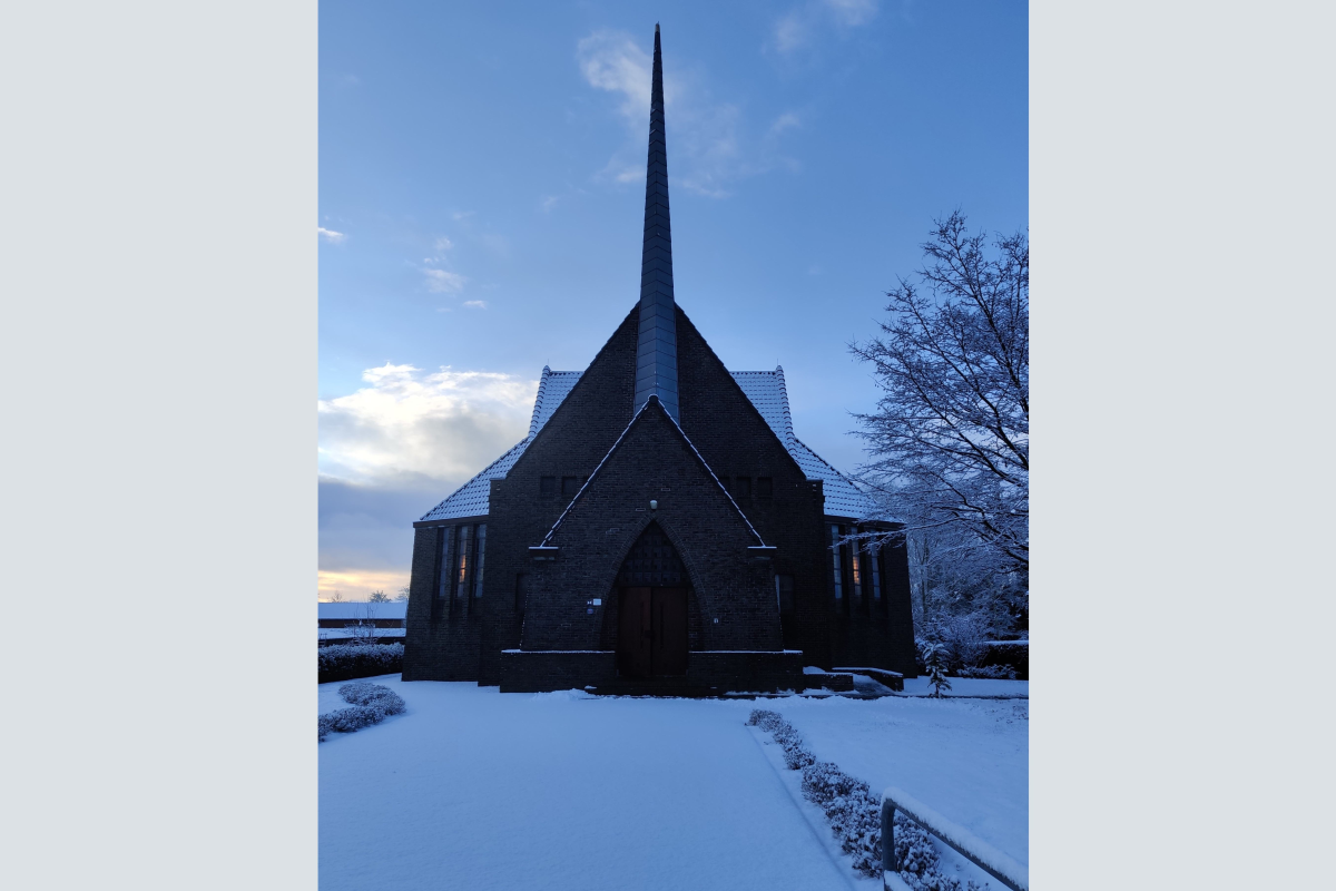 4 januari - de eerste dienst van het nieuwe jaar. We werden wakker in een witte wereld! Ondanks dat de wegen glad waren, kwamen toch vanuit alle hoeken van De Dollert en Midwolda gemeenteleden naar de kerk van Oostwold. Daar had koster Kees er al voor gezorgd dat het pad naar de kerk helemaal schoon was.