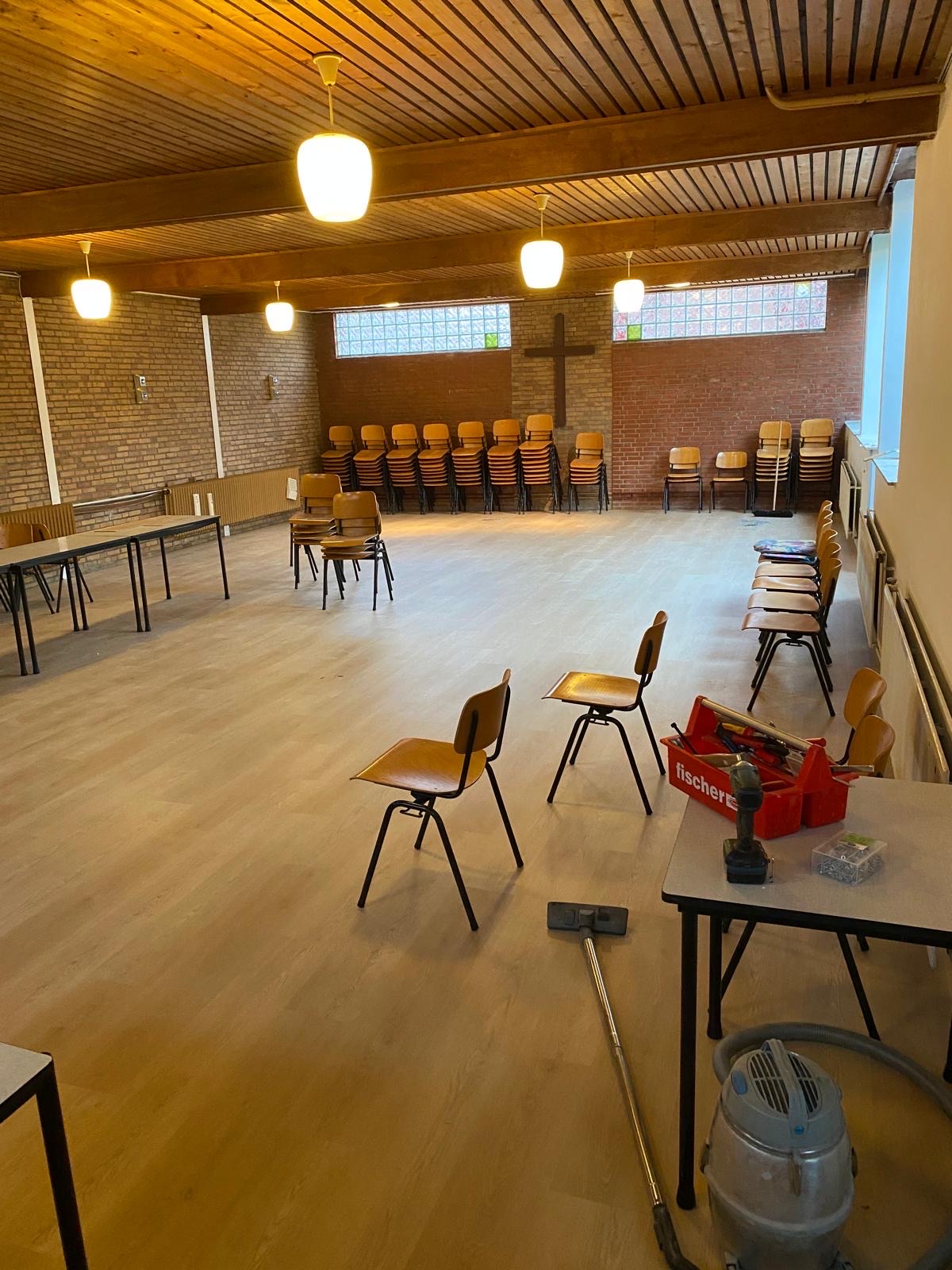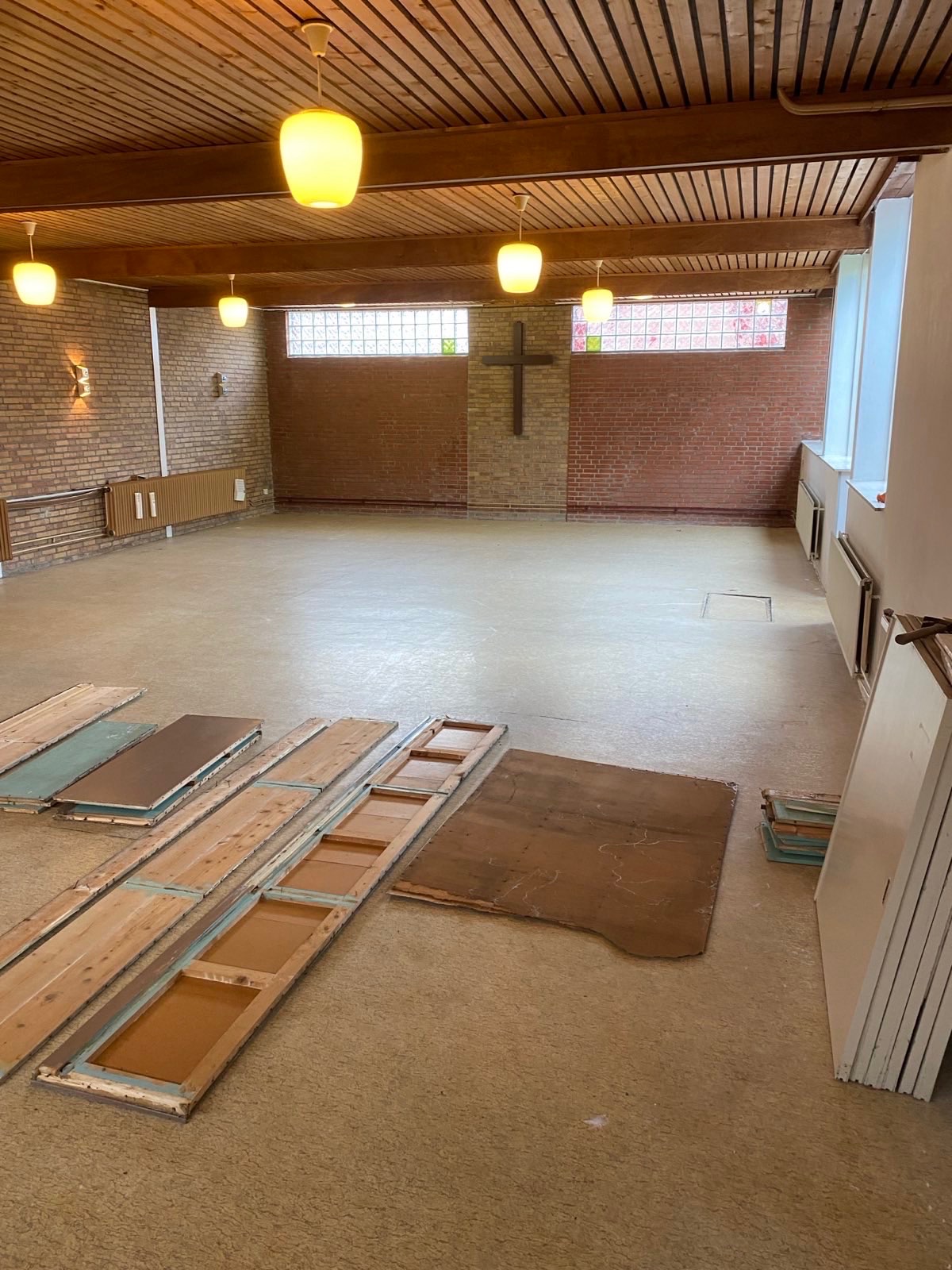 Zoals eerder gemeld willen we graag ons gebouw in Bad Nieuweschans behouden voor kerkelijke en dorpsactiviteiten. Enkele grote renovatiewerkzaamheden werden en worden door een aannemer uitgevoerd, zoals het dichten van scheuren in muren en vervangen van kozijnen. Daarnaast hebben vrijwilligers de afgelopen maanden de hele inventaris uitgezocht, wat enkele leuke ontdekkingen opleverde. De gordijnen en vitrages zagen na jaren weer het sop en muren en plafonds zijn weer fris wit gesausd. Kozijnen van ramen en deuren zijn geverfd en eind november worden nieuwe vloeren gelegd. Het is ook gezellig met elkaar zo aan het klussen te zijn! Voor de Kerst hopen we zo weer onze bijeenkomsten in een mooi Rehoboth te kunnen houden. Met dank alvast voor de inzet van velen!