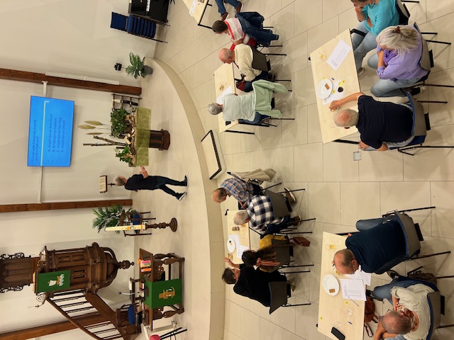 Aan deze pub quiz deden ongeveer 60 gemeente leden mee, en die werden ook nog eens gadegeslagen door een handje vol publiek.