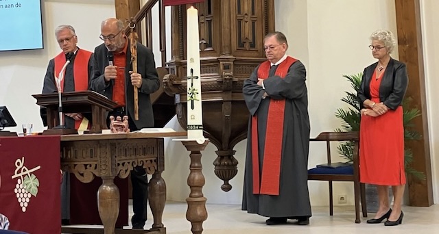 Een gelegenheidskoor, muziek van chr. muziekvereniging Prins Hendrik, alle 4 de pastores, een volle kerk, zang! Een interactive 'preek'. Met praatstok! Presentatie van onze nieuwe communicatiemiddelen: website, kerkblad, kerkapp. Presentatie van activiteiten van het komende jaar. Koffie, baksels, soep... Wat een feest! Thema: Als nieuw! Leven in het licht van Gods koninkrijk. Een fotoverslag hoort er ook nu weer bij: (foto's van verschillende kanten, door verschillende personen met ook stills uit de opname van de dienst) ![]() Voorbereidingen, buiten en binnen... ![]() ![]() ![]() ![]() ![]() Voltallige kerkenraad en de pastores kwamen binnen: we gingen beginnen met een pachtige muzikale opening van muziekvereniging Prins Hendrik. Daarna een welkom van taakdrager van dienst, en voorzitter van de kerkenraad, Ben Wanders. ![]() Oefenlied met het gelegenheidskoor. ![]() De liturgische schikking (uitleg). ![]() ![]() Geen preek, maar het team van de 4 pastores liet de gemeente aan de hand van Handelingen 15 nadenken over een aantal 'hoe met elkaar omgaan' vragen. ![]() Wie wat wilde zeggen kreeg de praatstok, de kinderen konden daarbij helpen. ![]() ![]() Er was ook een afscheid ![]() van Lucy Bontjer, ouderling vanuit Meeden. Woorden van waardering en dankbaarheid voor haar inzet. ![]() Na de gebeden, met het Onze Vader in gebarentaal, ![]() en de zegen, werd de gemeente geïnformeerd over de nieuwe communicatiemiddelen. Ruth Drewel vertelde het een en ander over het proces hier naartoe. ![]() ![]() ![]() ![]() Bedankjes en attenties voor de mensen die een en ander gerealiseerd hebben. ![]() ![]() ![]() Daarna: een swingende toegift door Prins Hendrik, ![]() langs de collectezakken, ![]() naar de koffie met eigen baksels. ![]() We konden kennisnemen van het jaarprogramma van Over de Brug 2024-2025. ![]() ![]() ![]() Toen was de koek op ![]() letterlijk, dus tijd voor de soep ![]() van Fré, dus dat wilden we wel. ![]() En dat alles met het prachtigste weer wat een late septemberdag kon bieden. Als nieuw! Leven in het licht van Gods koninkrijk. Wat een feest! | ||