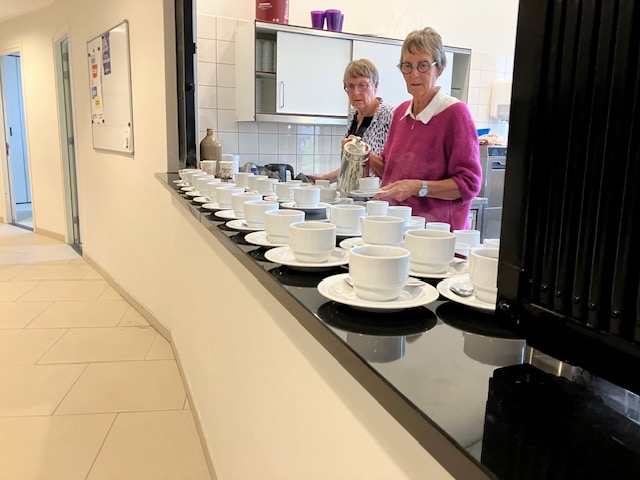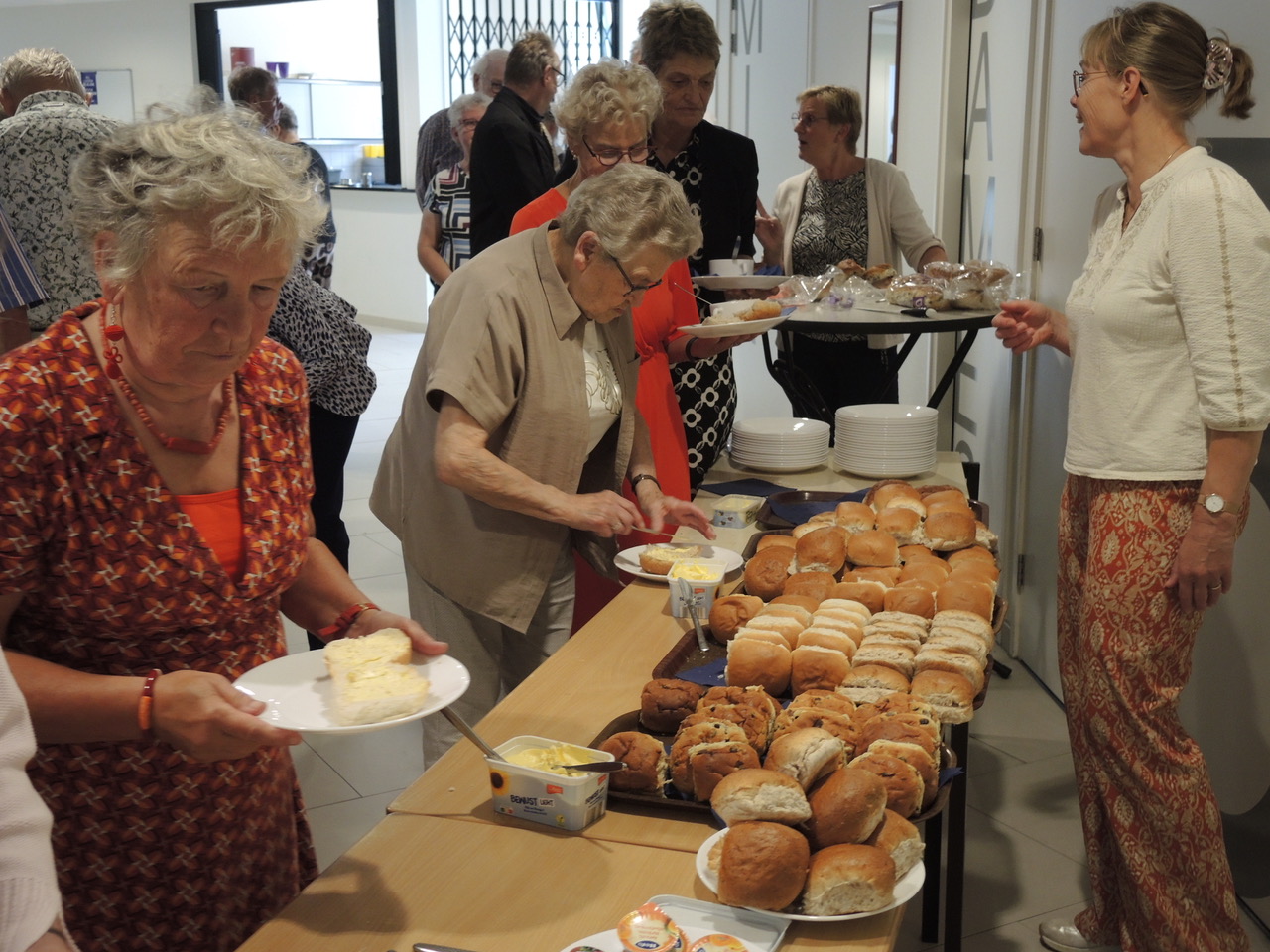Daarna uiteraard koffie of thee met gewoontegetrouw de eigen baksels en we konden van de commissie Over de Brug een presentatie van de activiteiten voor het nieuwe seizoen bekijken.