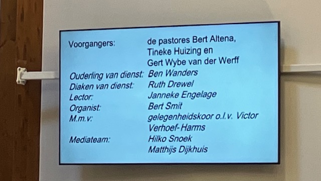 Aan de dienst is meegewerkt door enkele mensen van de cantorij, aangevuld met een gelegenheidskoor o.l.v. Victor Verhoef-Harms.