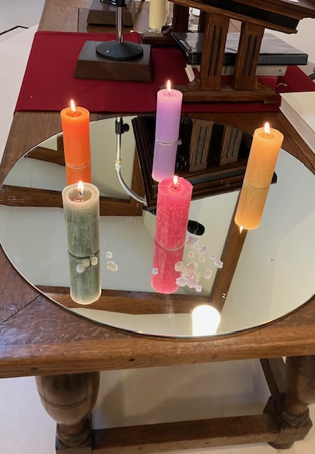 Ben nodigde ook 5 vertegenwoordigers van de 5 wijken van onze gemeente uit om 5 kaarsen aan te steken, elk met een andere kleur.