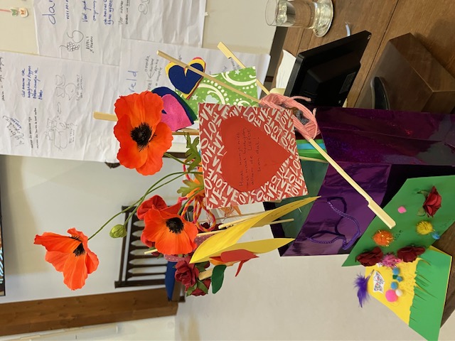 Met meegebrachte bloemen of takken uit eigen tuin werd ter plekke een kleurrijk geheel gemaakt: een kleurrijk bloemstuk van en voor een kleurrijke gemeente!