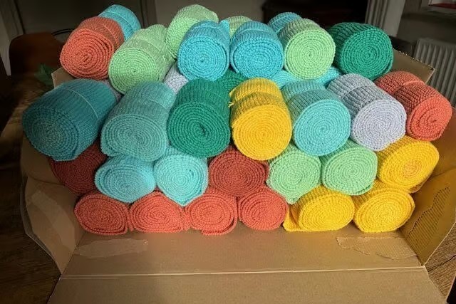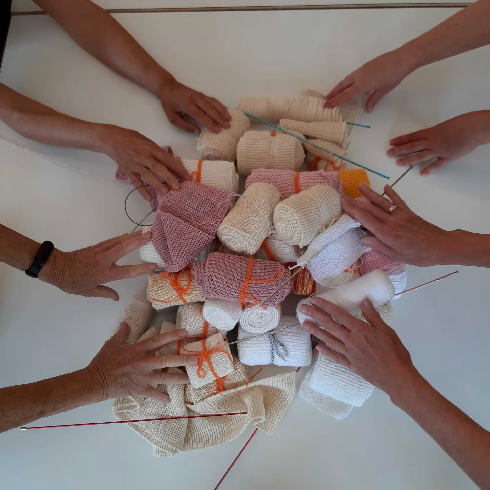![]() Ben Wanders stelde een tijdje geleden de vraag wie mee wilde helpen met het breien van zwachtels voor leprapatiënten in de Democratische Republiek in Congo. Daar kwamen gelijk veel enthousiaste reacties op. Om wat meer informatie over dit project te geven en wat praktische zaken door te nemen, was er op zaterdag 21 maart een bijeenkomst in Ons Gebouw in Oostwold. Ben had Rein Boxum meegenomen en samen vertelden ze over The Leprosy Mission / Leprazending, de organisatie waarvoor we breien. Ook zagen we een filmpje over Nagammal die ons vertelde over haar leven met lepra. Een indrukwekkend verhaal van een sterke vrouw. Na de presentatie was er koffie en thee en de gelegenheid om met elkaar verder te praten. Natuurlijk werd er ondertussen stevig gebreid en ook Ben ging o.l.v. Ans aan de slag om het breien onder de knie te krijgen. | ||
